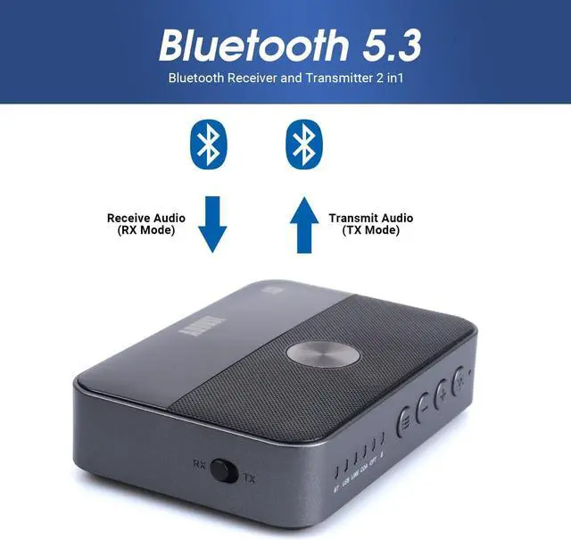 USB, 3.5 mm, OPTICAL, COAXIAL, RCA AUDIO ADAPTER - Connect as a Bluetooth AUX adapter with 3.5 mm or use RCA stereo cable, optical audio TOSLINK or coaxial audio. Connect soundbars, Hifi, cars, TVs, or your own USB media. Using the cabled bypass mode you can convert coaxial or optical to AUX or RCA with lossless wired audio for maximum compatibility