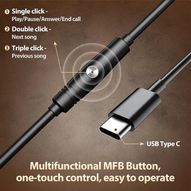 All-Day Comfort & Portable Travel CaseSoft protein leather ear cushions, filled with memory foam, provide lang comfort for extended wear. The included waterproof EVA case makes these wired earbuds USB C perfect for on-the-go usewhether you're commuting, traveling, or at the office. In-Line Smart Controls & Low Power Consumption, The built-in multifunction button lets you easily play/pause, skip tracks, and manage calls. With USB-C Headset wired connectivity, these headphones ensure ultra-low power draw, preserving your device's battery while delivering reliable performance.
