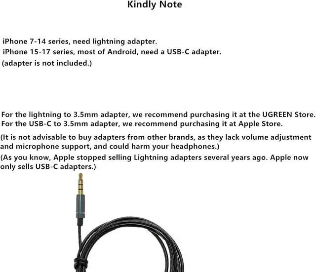 COMPATIBLE WITH ALL 3.5MM JACK DEVICES: iPhone 17 series, 16 series and 15 series, Most Android require an USB-C adapter. iPhone models from 7 to 14 require a lightning adapter. (adapter is not included. )