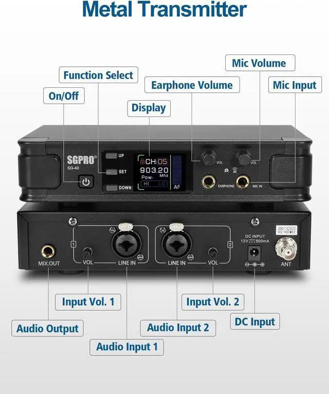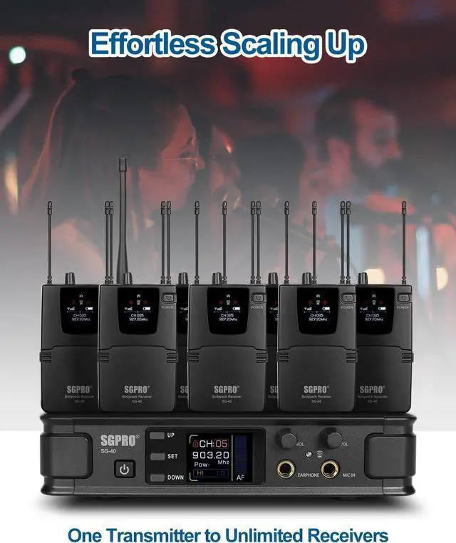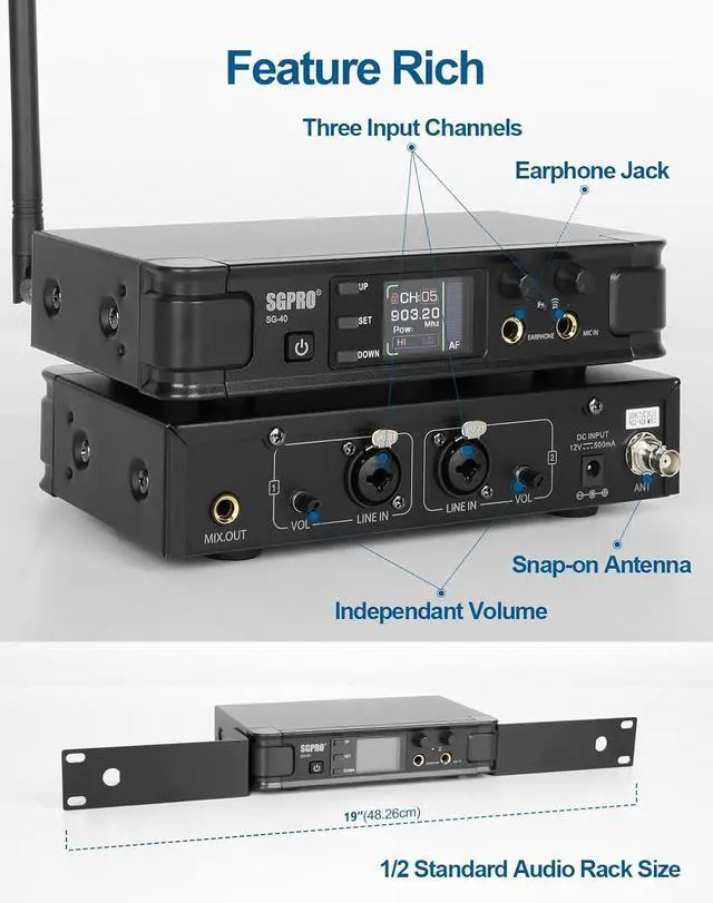 Scale up effortlesslyone transmitter can connects to multiple receivers. Three audio input jacks allow flexible setups and support phantom-powered mics.