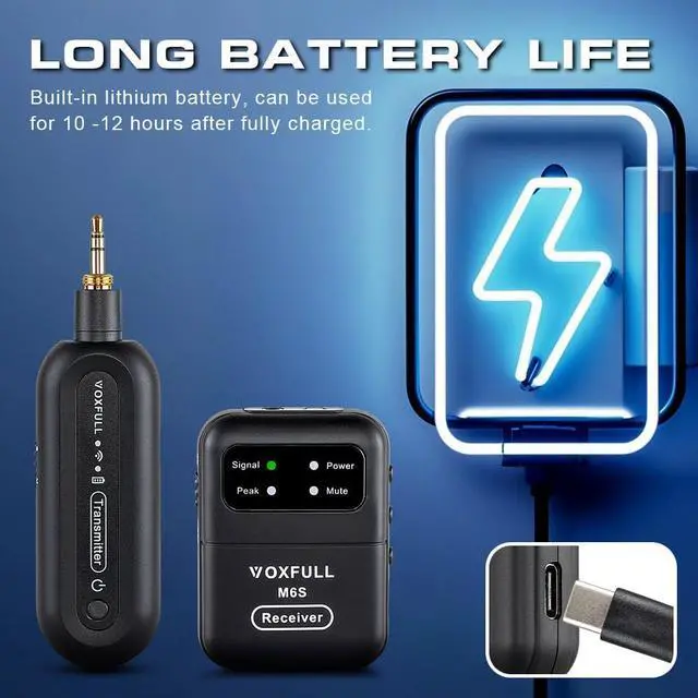 The transmitter and receiver have built-in rechargeable largecapacity lithium batteries, which can last for 10 hours after fullcharge.