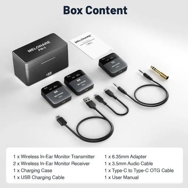 Crystal Clear Audio: Operating on the 2.4GH z band, this wireless in-ear monitor system provides reliable audio transmission. It delivers 24bit/48kHz HD audio for exceptional clarity, a wide 20Hz20kHz frequency response that captures every detail, and a 100dB signal-to-noise ratio for clean, distortion-free soundensuring an accurate and immersive listening experience