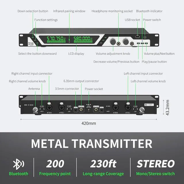 Multi-Situation Application: This wireless in ear monitor system is suitable for multiple scenarios, with preset modes covering live, studio, podcast and more, and comes with visual LCD metering to ensure perfect performance at events, stage performances, lectures and more.
