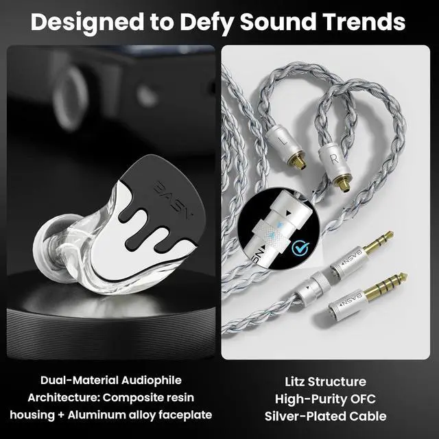Durable Detachable CableThe in ear monitors for musicians upgraded with silver-plated OFC wiring ensure high-fidelity audio durability. Interchangeable 3.5 mm/ 4.4 mm plugs ensure flexible device compatibility with audio interfaces, DAPs, and stage mixers