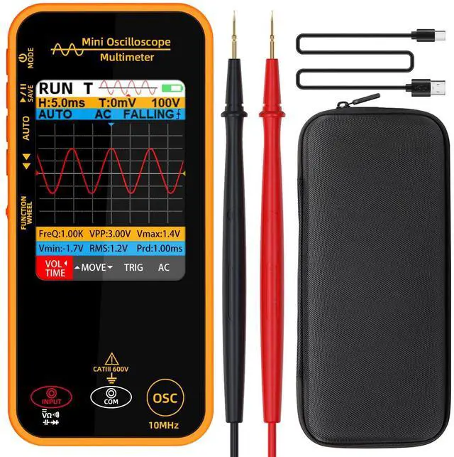 [Protective Case]: Oscilloscope multimeter with durable protective case for protection against shocks, friction and bumps.