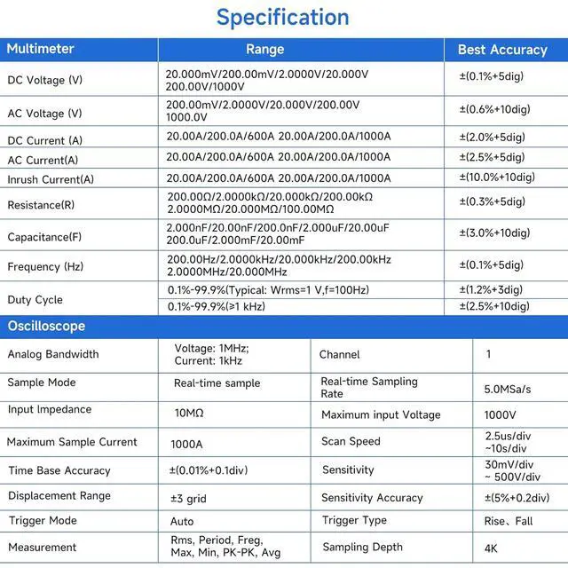 Enhanced Measurement CapabilitiesFeatures inrush current detection, non-contact voltage (NCV) detection, customizable alarms, and a high-visibility 2.8 IPS LCD screen with a dual theme mode for clear readings in any lighting condition.