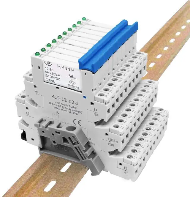 (10Pcs) 12V Relay Din Rail;Silm;DC 12V;HF41F/12-ZS 5 Pin 1NO 1NC 6A SPDT with LED Indicator with Socket Base;Load Max 6A 250VAC;
