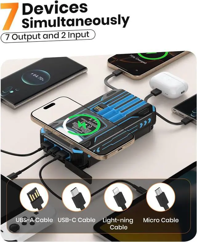 3A Fast Charging: The upgraded 5V/3A USB-C port delivers rapid chargingboong your IPhone from 15% to 60% in just 30 minutes. Compatible with 99% of devices on the market, including smartphones, tablets, and Galaxy models.