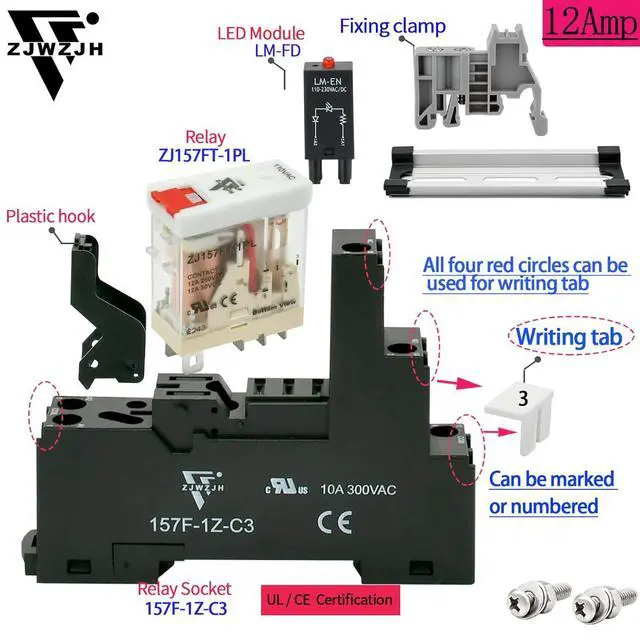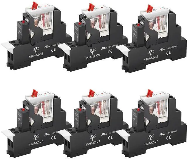 Package Content : 6 x Electromagnetic Relay, 6 x Socket, 2 x Fixing clamp , 1 x DIN Rail, 4 x Screws.