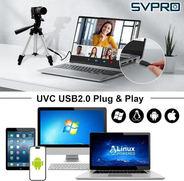 USB Plug & Play, UVC compliant usb camera, just connect the camera to PC, laptop, Android device or Raspberry Pi with the included USB cable without extra drivers to be installed.