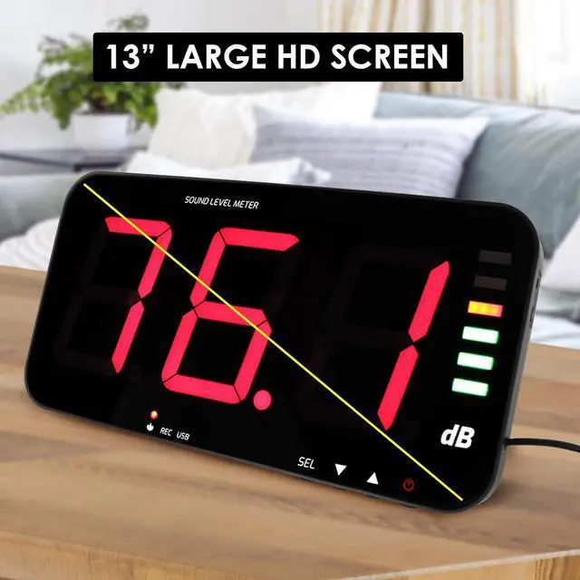 16.4FT Sound Sensor wall mounted sound decibel meter is equipped with 16.4 feet extra Long sound sensor, you may detect all of the sound source around based on your need