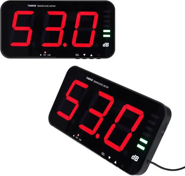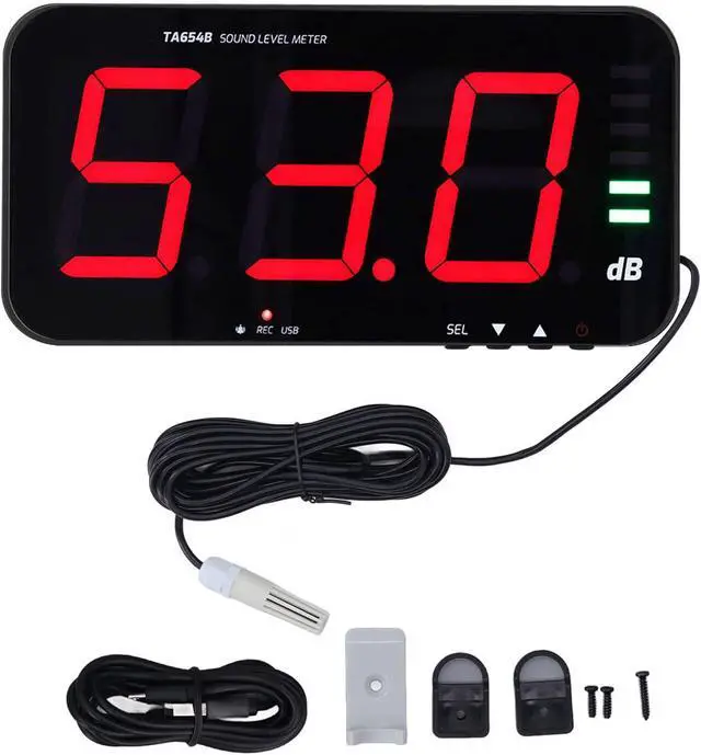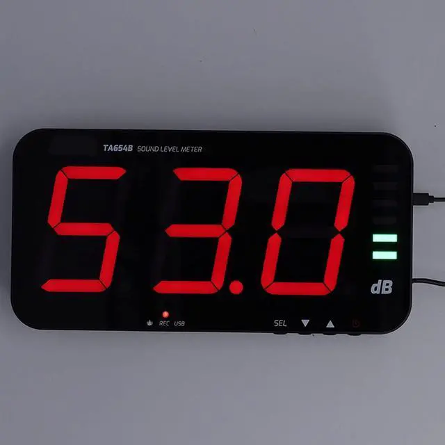 Digital Screen: The decibel meter adopts 13in large screen to clearly view the real time decibel level, temperature and humidity, with adjustable brightness.