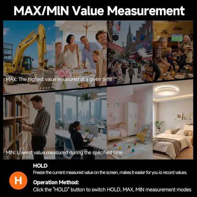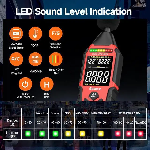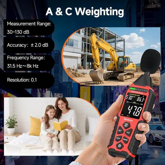 Extensive Application Scenarios sound level meter complies with IEC standards and is suitable for measuring traffic noise, industrial noise, workshop noise, and the performance of sound systems. It is perfectly suited for monitoring noise levels in communities, home cinemas, vehicles, schools, offices, and factories, providing reliable data support in all these settings.