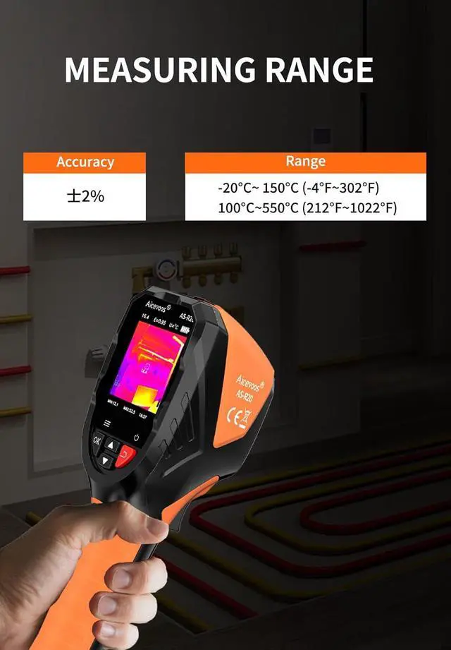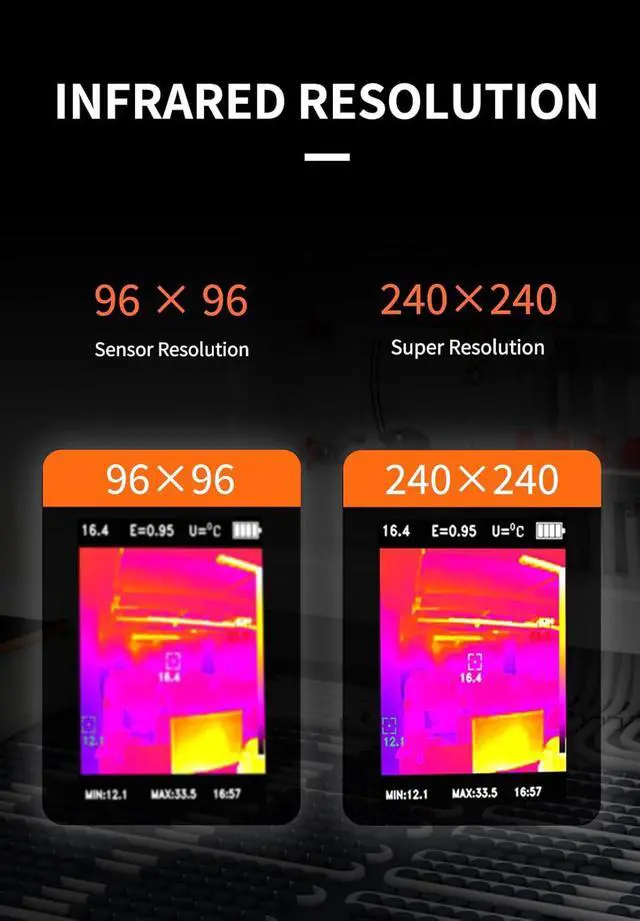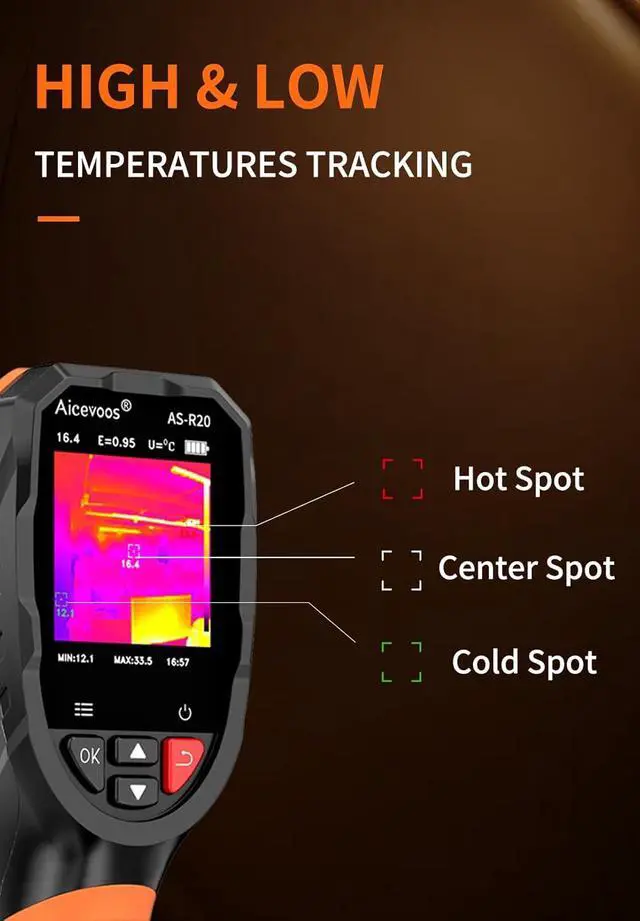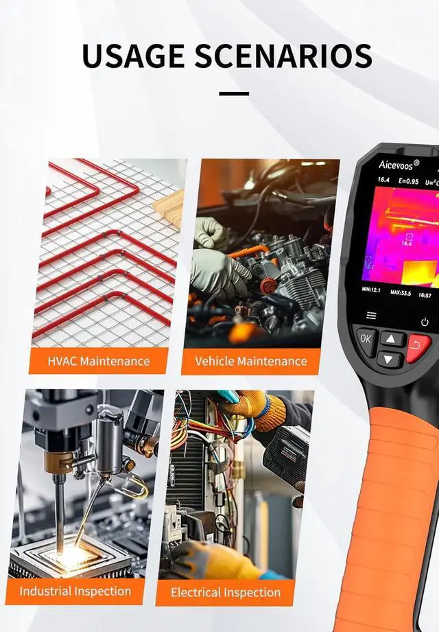 Ease of Use (1) Integrated laser pointer hs you locate the inspected object in low-light conditions or confined spaces. (2) 5 preset color palettes flexibly suit your diverse inspection scenarios and requirements. (3) USB Cast Screen allows instant display mirroring to computers for collaborative analysis. (4) Inspecting range is up to -4°F to 1022°F, you can also adjust to highlight specific scope you want to focus on.