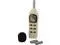 Sound level meter measures from 40 to 130dB with an accuracy of 2dB. The digital display offers a 0.1 dB resolution and features a fast responding analog bar graph. User can choose A or C weighting. Max Hold captures highest reading. Includes microphone wind screen and four AAA batteries.