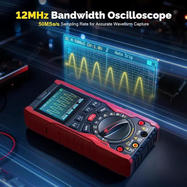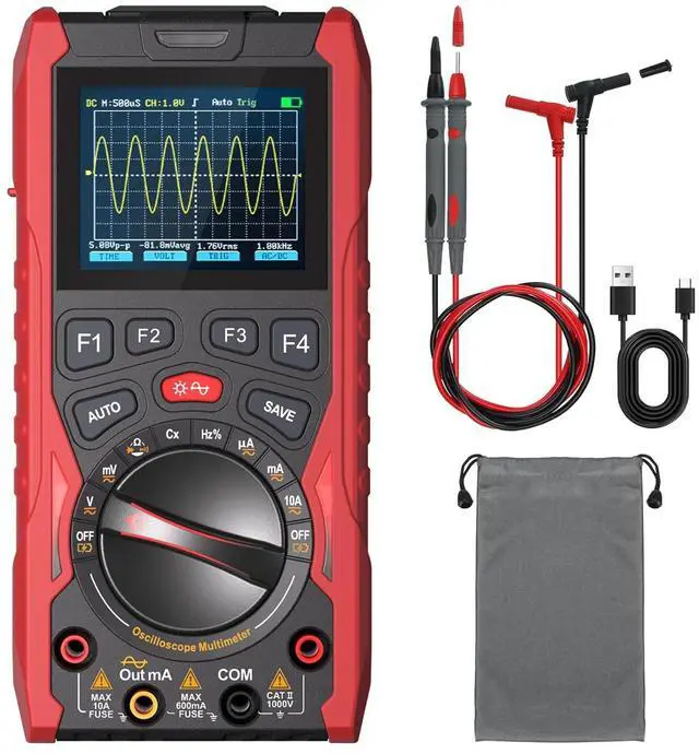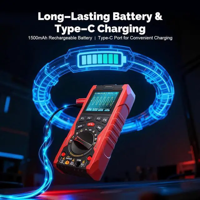 Portable & User-Friendly DesignPowered by a rechargeable 1500mAh battery with Type-C charging for cord-free operation anywhere. The 2.4" color display shows clear readings and waveforms. Great for students, hobbyists, and on-site technicians.
