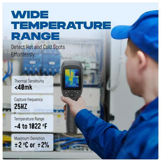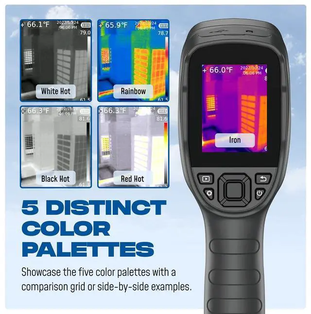 More Detail: With 1x, 2x, and 4x zoom, you can focus on specific areas and get a closer look at thermal images. This feature is great for pinpointing problems, like finding small thermal leaks or identifying moisture.