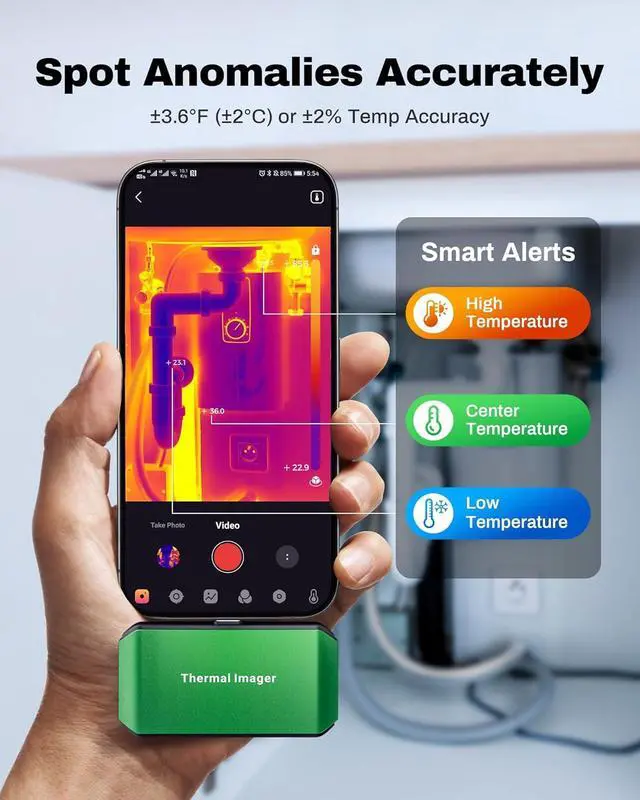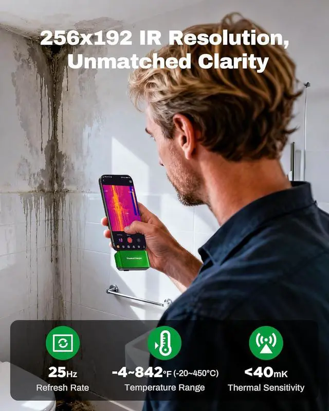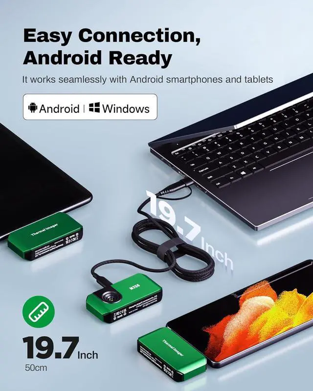 GRAB- AND- GO SIMPLICITY: Weighing just 30g and sized at 2.8 x 1.65 x 0.55 inches, this M256 thermal camera is a pocket-sized essential. Easily connect it to OTG-enabled Android phones for instant, on-the-go temperature monitoring. A 19.7 -inch USB extension cable adds flexibility, while the EVA anti-dust bag and cleaning cloth keep your device protected and ready for any task. Ideal for professionals and homeowners alikecarry it anywhere.