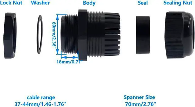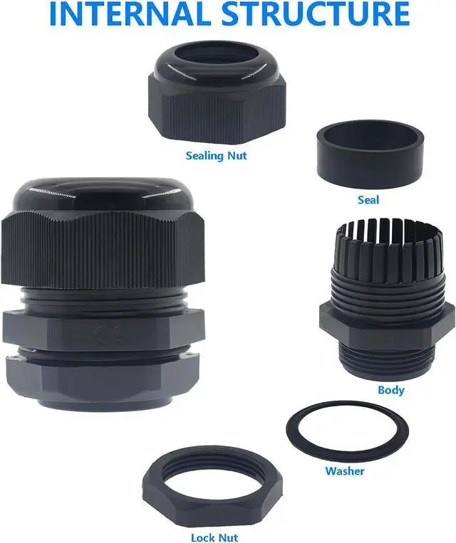 Usage: Thread the cable through the cable gland, then tighten the sealing nut and lock the nut.