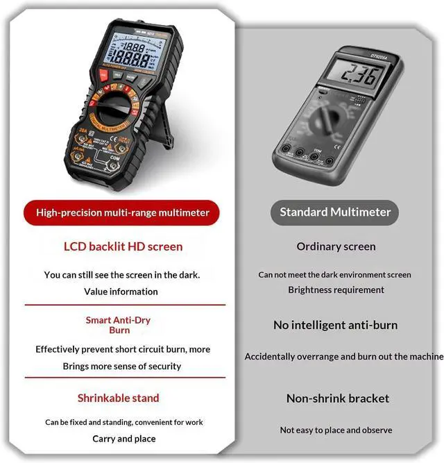 Product type: intelligent double tube multimeter with large capacity against burns