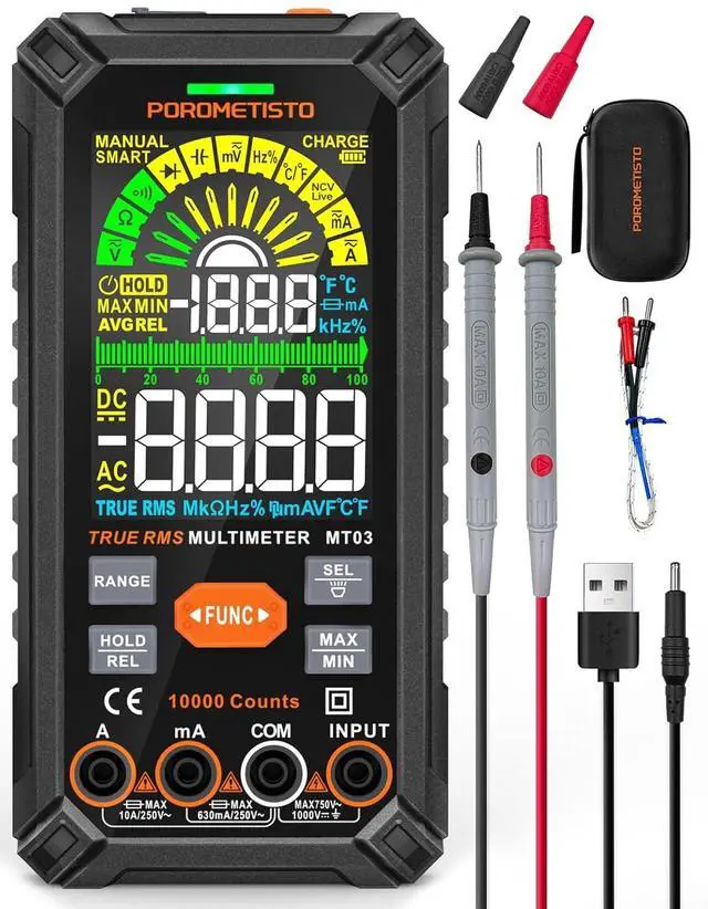 CAT IV Safety & Complete Kit: Certified with CAT. 600V and CAT III 1000V safety ratings, this digital multimeter meets the highest electrical safety standards for industrial and commercial applications. The package includes test leads, Type-C charging cable, thermocouple, battery, user manual, and a sturdy carrying caseperfect for professional electricians, facility managers, and engineering teams. While meeting your own ne, it is also a great Christmas gift for your friends and family.