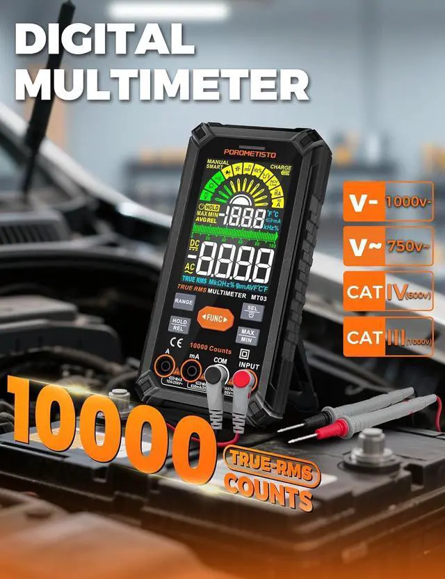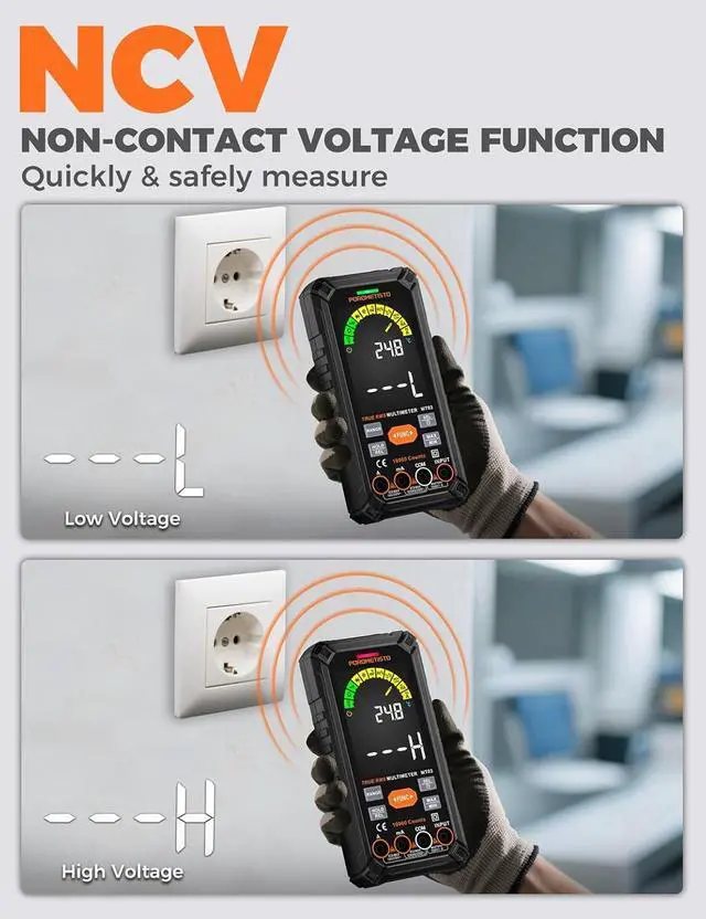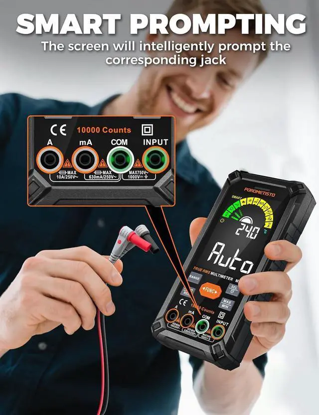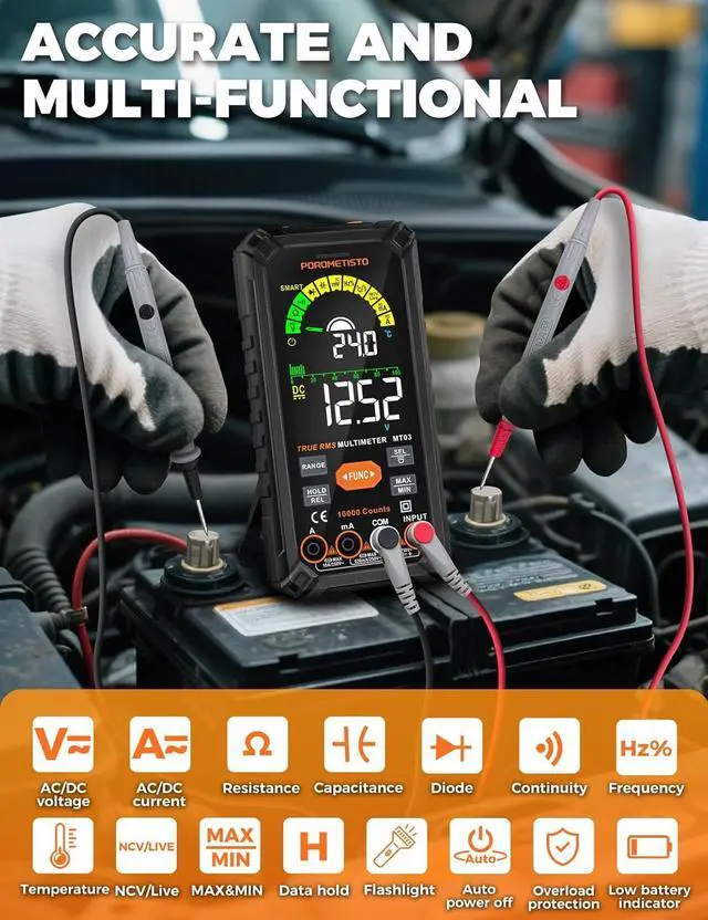 Smart Auto-Ranging Multimeter: This smart multimeter automatically detects AC/DC voltage, resistance, and continuity, eliminating the need for manual range switching and reducing the risk of misoperation. The automotive multimeter enhances measurement accuracy and safety for users at all skill levels, ideal for busy electricians and maintenance professionals.