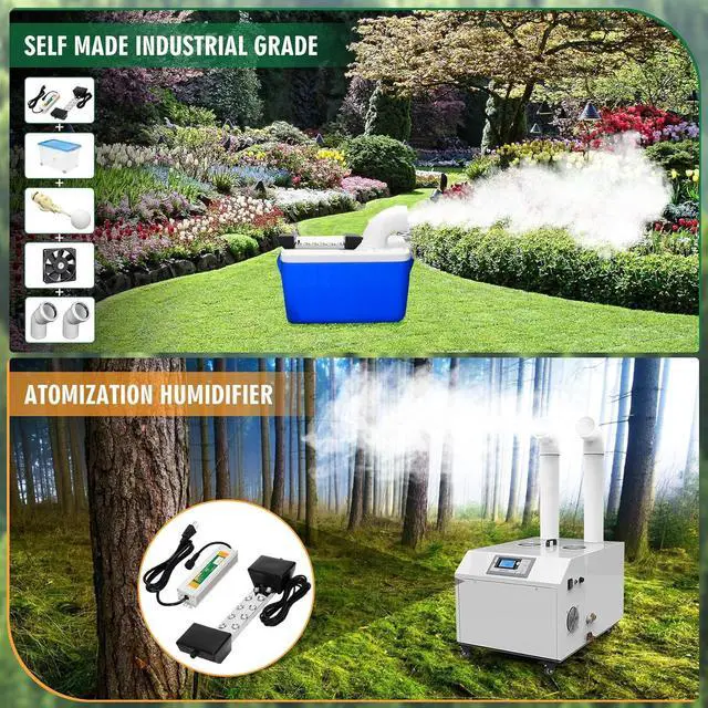 Ultrasonic fogger application scenarioThis 12 head ultrasonic fogger mist maker is widely used in various gardens, swimming pools, restaurants and other places. The mister fogger humidifier uses electrical oscillation of ultrasonic frequencies to produce water mist and spray water. This oscillation also produces negative ions that help freshen the air and the water mist will increase the humidity of the room