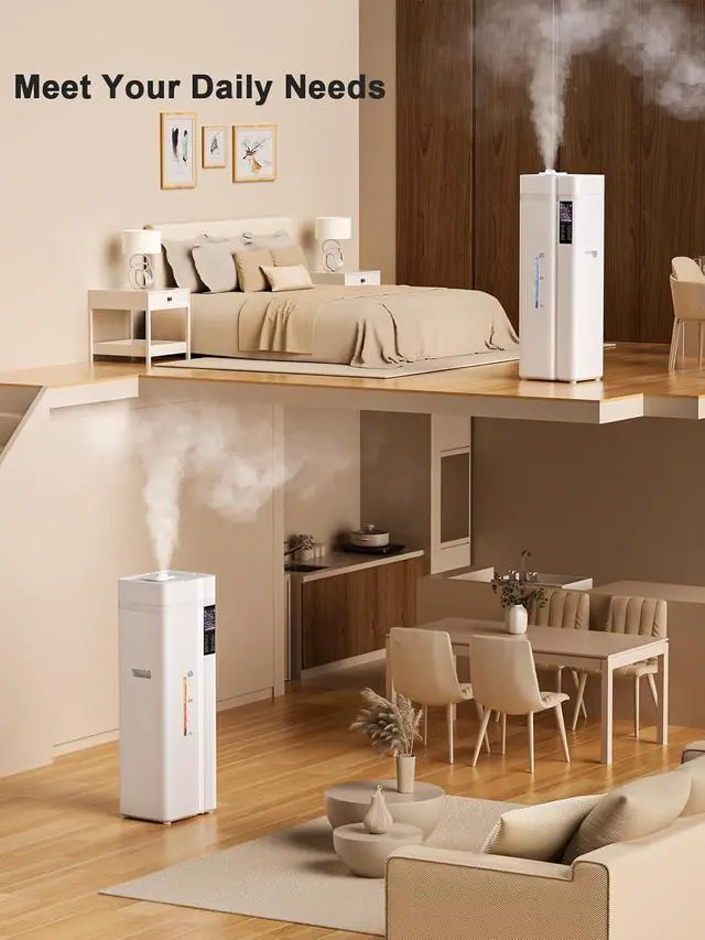 • Warm & Cool Mist Humidifier for Every SeasonEasily switch between warm and cool mist with a single button. The warm mist (reaching 130°F in 5 minutes) effectively alleviates dry air in winter, while the cool mist offers a refreshing sensation in summer. This versatile humidifier allows you to maintain personalized humidity levels for year-round comfort