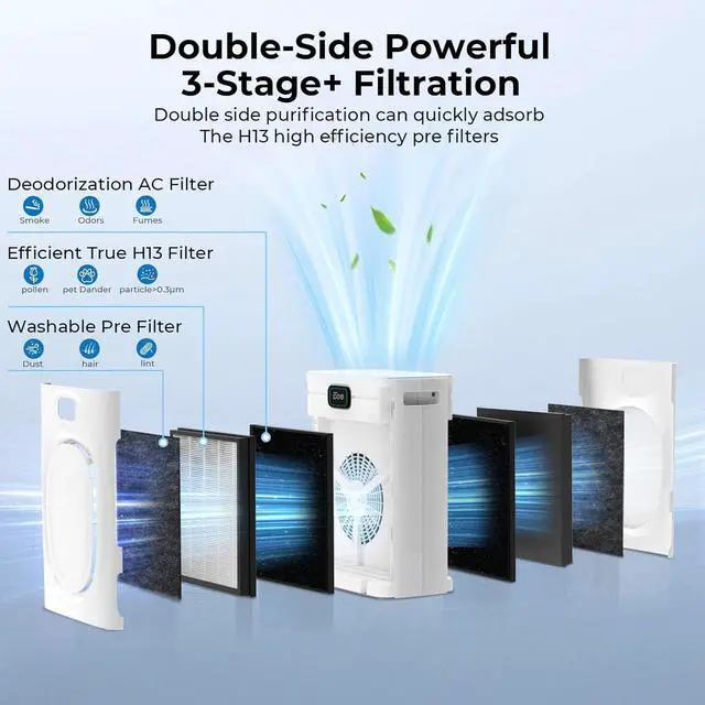 Long-term Use and Safe: This air cleaner have authoritative CARB, ETL, ROHS, DOE and FCC certification. We offer you reliable warranty and service, with 1 year warranty and 24H / 7D customer support. We are here to assist with operation and problem-solving, to ensure that your air purifier work properly for a long time.