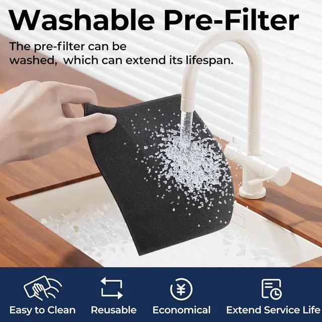 Washable Pre-Filter: This air purifier for bedroom is equipped with a robust three-stage filtration system for superior air cleaning performance, including pet hair, dust, and smell odors. By simply rinsing or vacuuming the pre-filter, you can help prolong the life of the main filter. This thoughtful design not only helps you save on replacement costs but also minimizes waste, making it a sustainable and eco-conscious choice for the long run