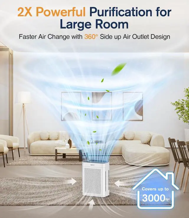 WHISPER-QUIET 15dB SLEEP MODE: Worried about your rest being interrupted? Adoption of a brushless motor effectively reduces 96.54 % of operating noise, and the room air purifier is as low as 15 dB in sleep mode. Besides, all indicator lights of the home air purifier are turned off. It will not interfere with your sweet sleep, allowing you and your family to enjoy fresh and clean air in sweet dreams. Low noise, low speed, and no lights, perfect for a good night's sleep!
