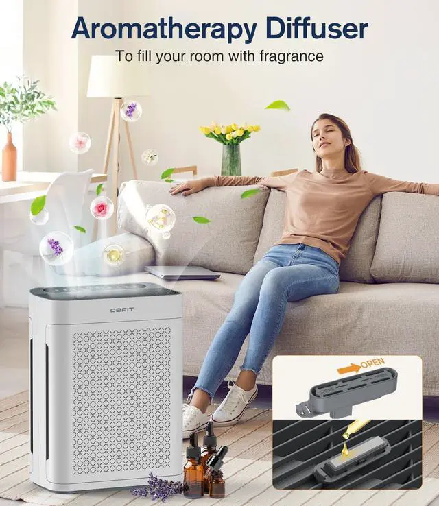 ESSENTIAL OIL DIFFUSER & CHILD LOCK: Place a few drops of essential oil on the diffuser pad on top of your hepa air purifiers for home to fill a room with a pleasant scent or mask unpleasant odors. The external aromatherapy box is designed for easy replacement and maintenance. (Tip: The aromatherapy box is in a transparent bag in the package). In addition, the thoughtful child lock of the air purifier prevents your baby and pet friends from accidentally touching or getting hurt.