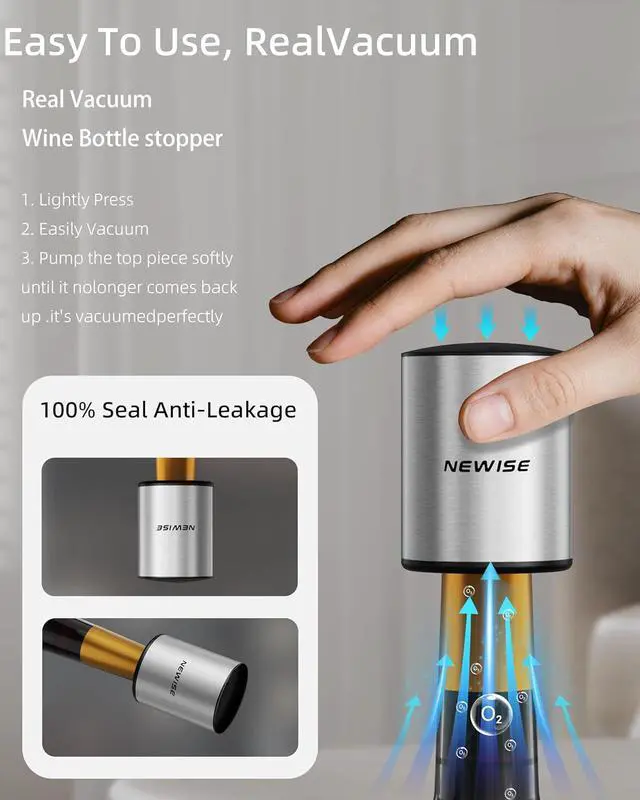 Preserve Wine FreshnessCrafted with premium food-grade silicone and durable stainless steel, vacuum stoppers safely lock in flavor without altering taste. Simply pump to remove air, extending wine freshness.