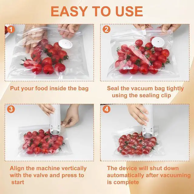 Reusable Vacuum Bags: The package includes 30 reusable vacuum bags made of food-grade materials. They are odor-free, safe, and suitable for storing food in both high and low temperatures. These vacuum bags are easy to clean, reusable for long-term use, and offer excellent leak-proof sealing. Providing you with a cost-effective food storage solution. (Note: Use sealing clips before vacuuming for optimal sealing results. )