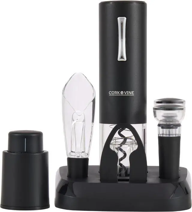 Rechargeable Corkscrew: Imagine having to use an old-school corkscrew to uncork a bottle of wine. Sure, there are more modern corkscrews out there, but this set includes a rechargeable one that automatically uncorks a bottle within seconds. Easy, fast, and convenient.