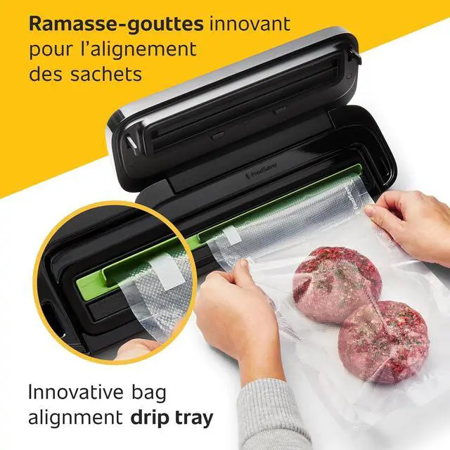 Easy bag alignment makes it easier than ever to precisely line up the vacuum seal bag to the machine's sealing strip
