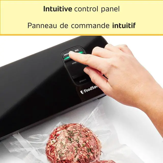 Easy and intuitive control panel for greater efficiency Compatible with 8" vacuum-seal rolls and 1-Quart and 1-pint vacuum-seal bags, and when used with Handheld sealer attachment (sold separately) works with Zipper bags and Fresh Containers