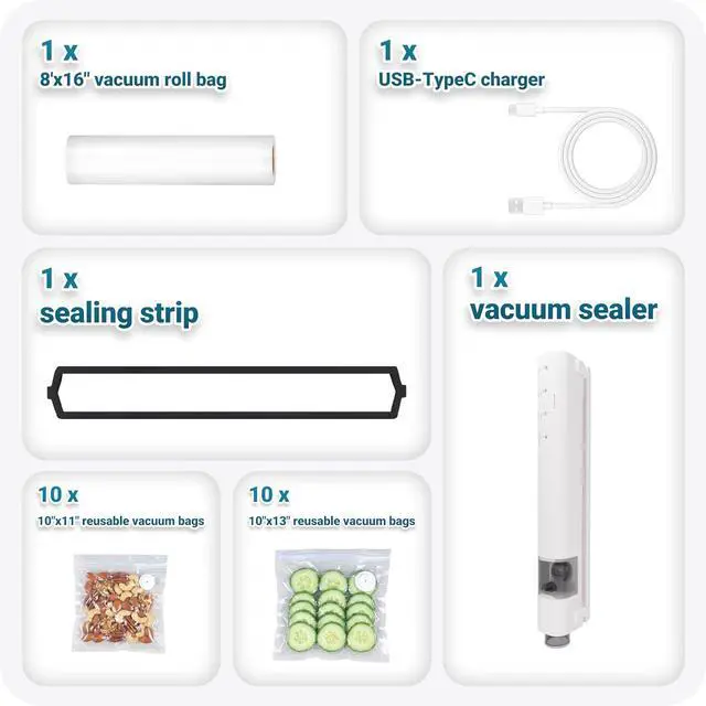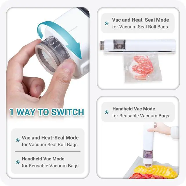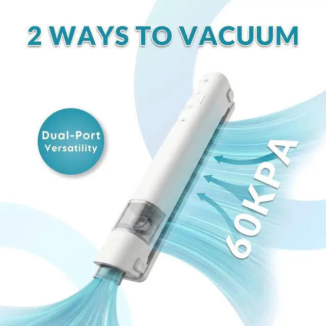 Streamline food preservation with this innovative 2-in-1 cordless vacuum sealer. Delivering powerful 60kPa suction, it ensures airtight seals in seconds without requiring cumbersome external hoses. The compact, user-friendly design features a unique rotating nozzle for seamless mode switching, a magnetic mount for space-saving storage, and a transparent reservoir for easy liquid management. Ideal for both kitchen and travel, this durable device offers professional-grade sealing for bags and jars alike. The complete kit includes vacuum bags, a roll, and USB-C charging for immediate use.