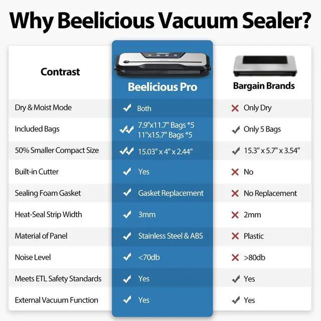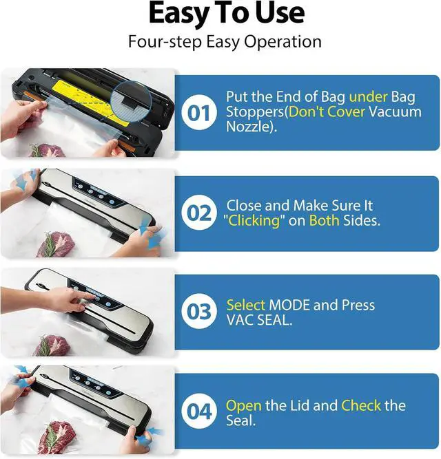 Compact Design & Easy to Clean 15.03" x 4.09" x 2.44", 50%+compact design saves countertop space; 11.8" maximum sealing length allows you to seal multiple bags in one sealing time; Stainless steel and ABS material, easier for you to clean.