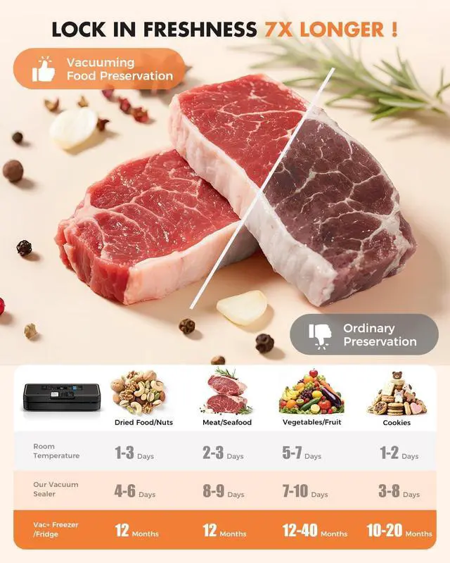 Turbo Flow & 95kPa Pro SuctionDriven by a high-performance 135W motor, s 12L/min airflow clears the air in seconds for lightning-fast sealing. The pro-level 95kPa suction creates a deep vacuum that keeps food fresh up to 8x longer. For fragile items, simply use the Gentle Pulse mode for ultimate control. Its so fast and powerful, oxygen barely has time to say goodbye!
