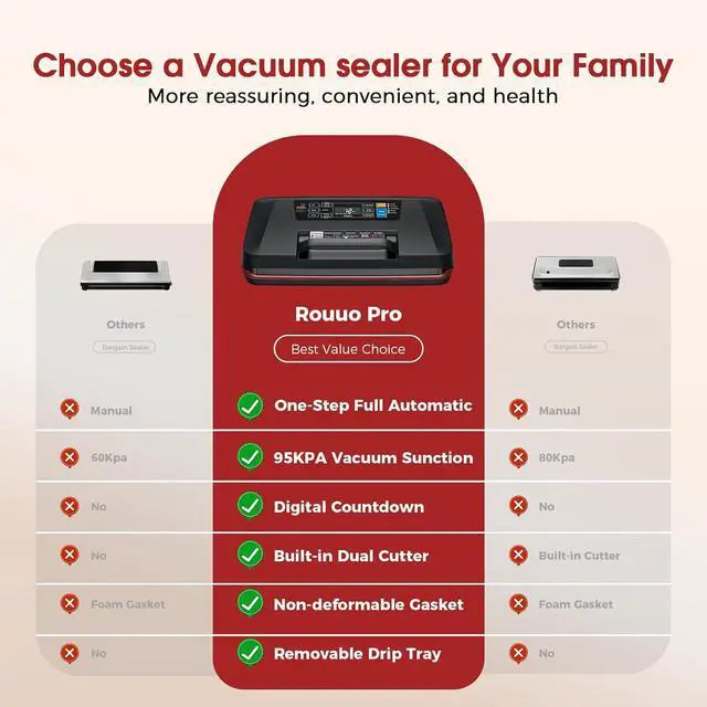 Everyday Use: This vacuum sealer includes a secure lock handle, a dedicated storage space for vacuum bags, and an improved two-way cutter. Its compact and practical design saves time and storage space while ensuring simple operation. [Please do not store the device with the lid locked down, as the silicone seal may become compressed and deformed. ]