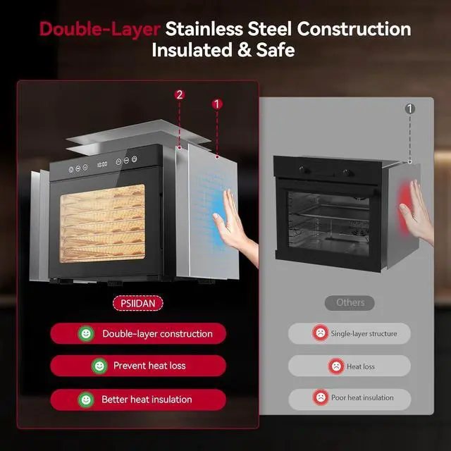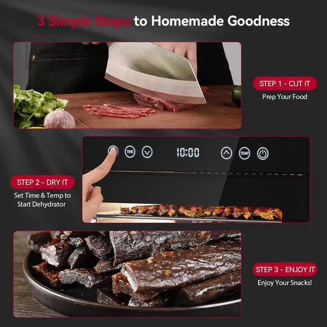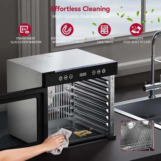 Effortless Cleaning and Maintenance: Cleanup is straightforward and fast! The stainless steel trays and seamless interior wipe clean with ease. Spend less time on maintenance and more time enjoying wholesome snacks from your 8-tray dehydrator.