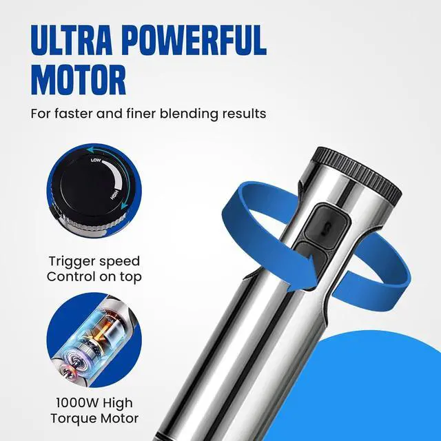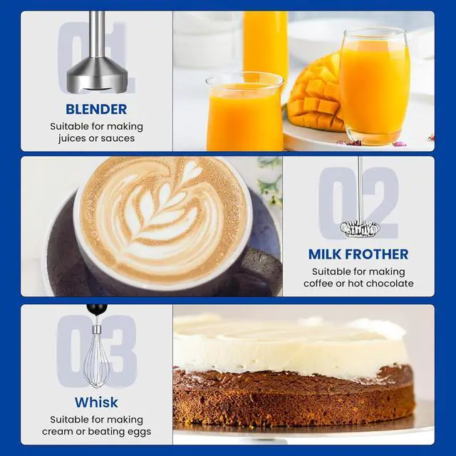 Easy to Clean & Store: Detachable, dishwasher-safe attachments make cleanup simple. Compact design fits easily in drawers or cabinets your go-to electric hand blender, emulsifier, and handheld food processor for everyday use.
