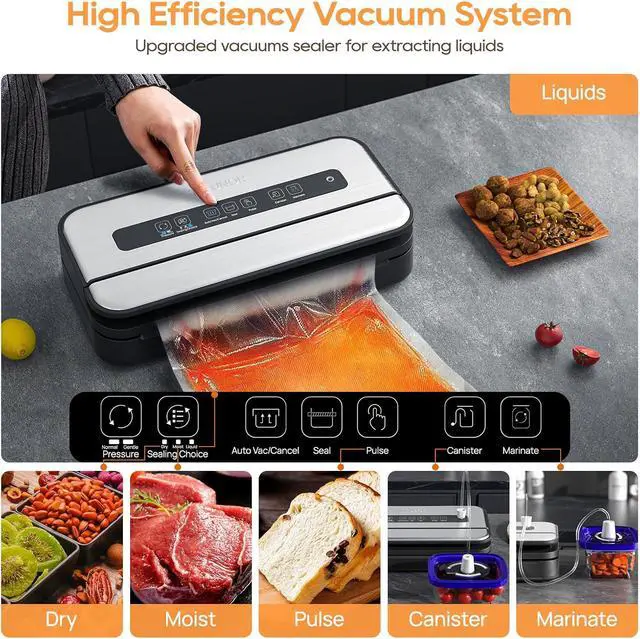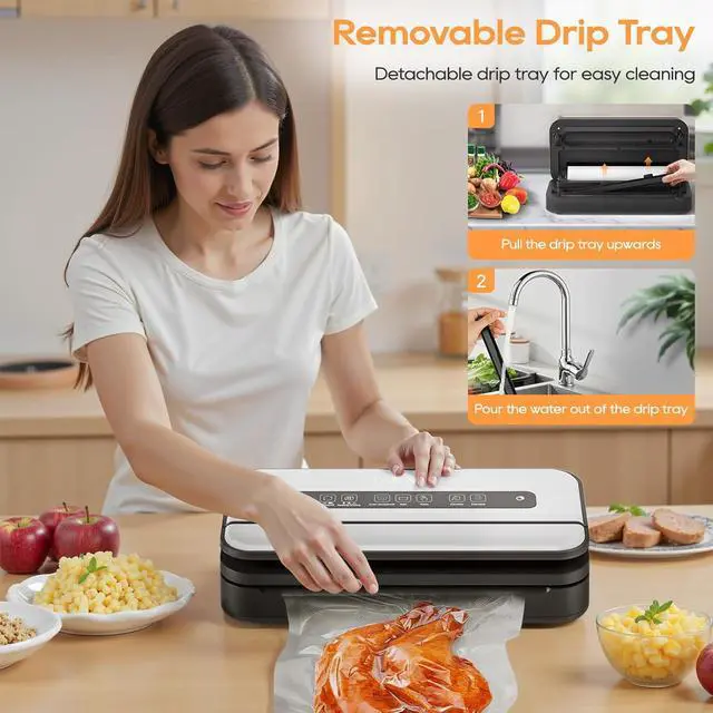 ETL Test Quality & Design for Manufacturing Quality: Food vacuum sealer for liquids is ETL certified by a nationally recognized testing laboratory and meets strict safety standards. This vacuum sealer machine has a sleek and compact design that is perfect for the countertop. and it's made of stainless steel, which is sturdy and well-made, and comes with a removable drip tray for catching spills, making cleanup a breeze.