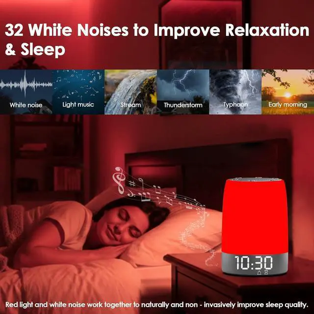 Gentle Light-and-Sound Wake-Up Alarm + Portable Design Start your day refreshed (not jolted! ) with a natural sunrise-style wake-up, combining soft red light and calming sounds. Its compact, lightweight build is perfect for home use or travelkeep your consistent sleep routine intact, no matter where you are.