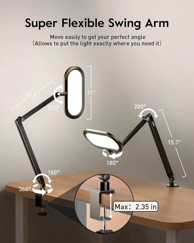 Stylish C Clamp Design - Space-Saving: Strong metal C-clamp mounts on desk easy and quickly, saving space and perfect for home office setups; no base, just a sleek, cable-managed led desk lamp ready to upgrade any home office setup