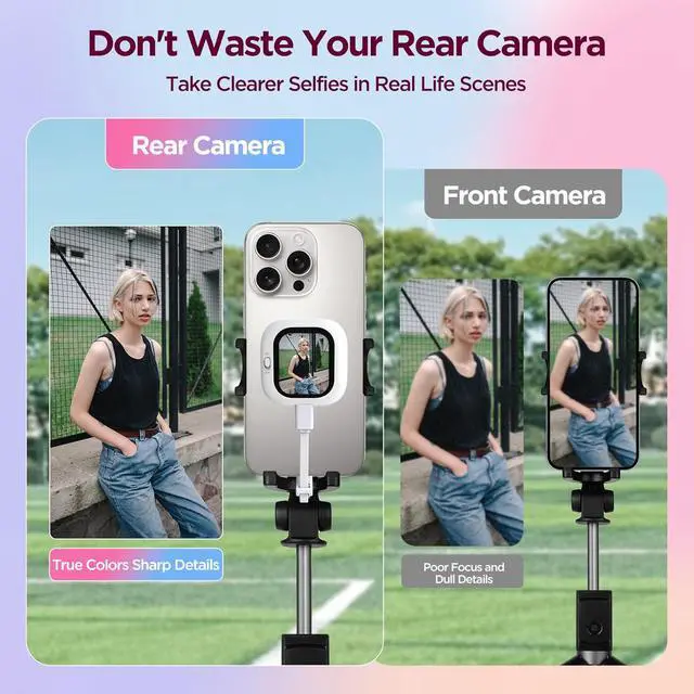 Friendly Reminder: This vlog selfie monitor screen is designed exclusively for iPhone and is compatible with iPhone 5 and later models. For first-time use, please unlock your phone and grant permission to proceed. The accessory is stored at the bottom of the boxdont forget to check and take it out