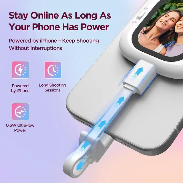 Design: Powered directly by your iPhone, this selfie monitor screen runs as long as your iPhone does. Lightweight and compact, it slips easily into your pocket or camera bagready for filming on the move, city walks, or family gatherings