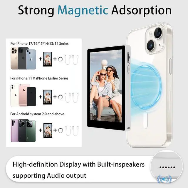 One-Click Shooting & Screen Rotation: This upgraded vlog magnetic selfie screen with audio can be taken with one click, no need for a bluetooth remote control, you can just hold it in your hand and shoot as you go! The screen rotation button allows you to flip the screen 90° with just one click, press for 3 seconds to mirror the screen, ready to immediately correct the direction according to your shooting preferences, to avoid the embarrassment of upside down viewing.