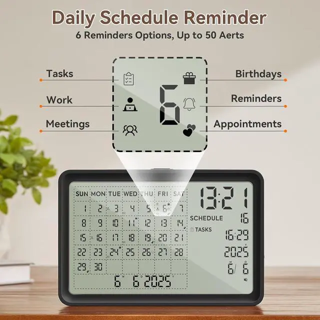 Power Outage Protection: No More Data Loss, the built-in memory function ensures your time, calendar events, and reminder settings are safely retained even when the battery runs out. So you never have to worry about re-entering everything once it's charged again. Reliable protection for your busy life